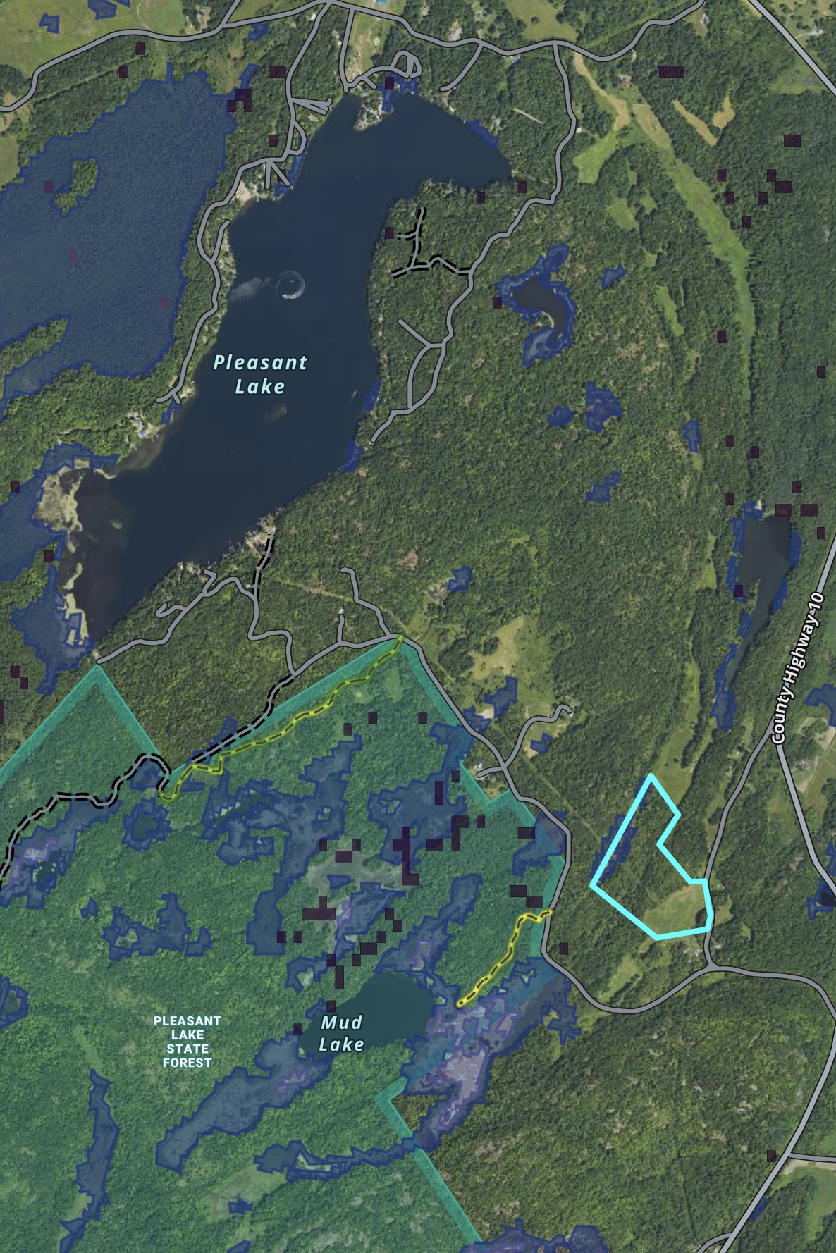 - Mud Lake and Pleasant Lake State Forest, with trailheads, right across the road.