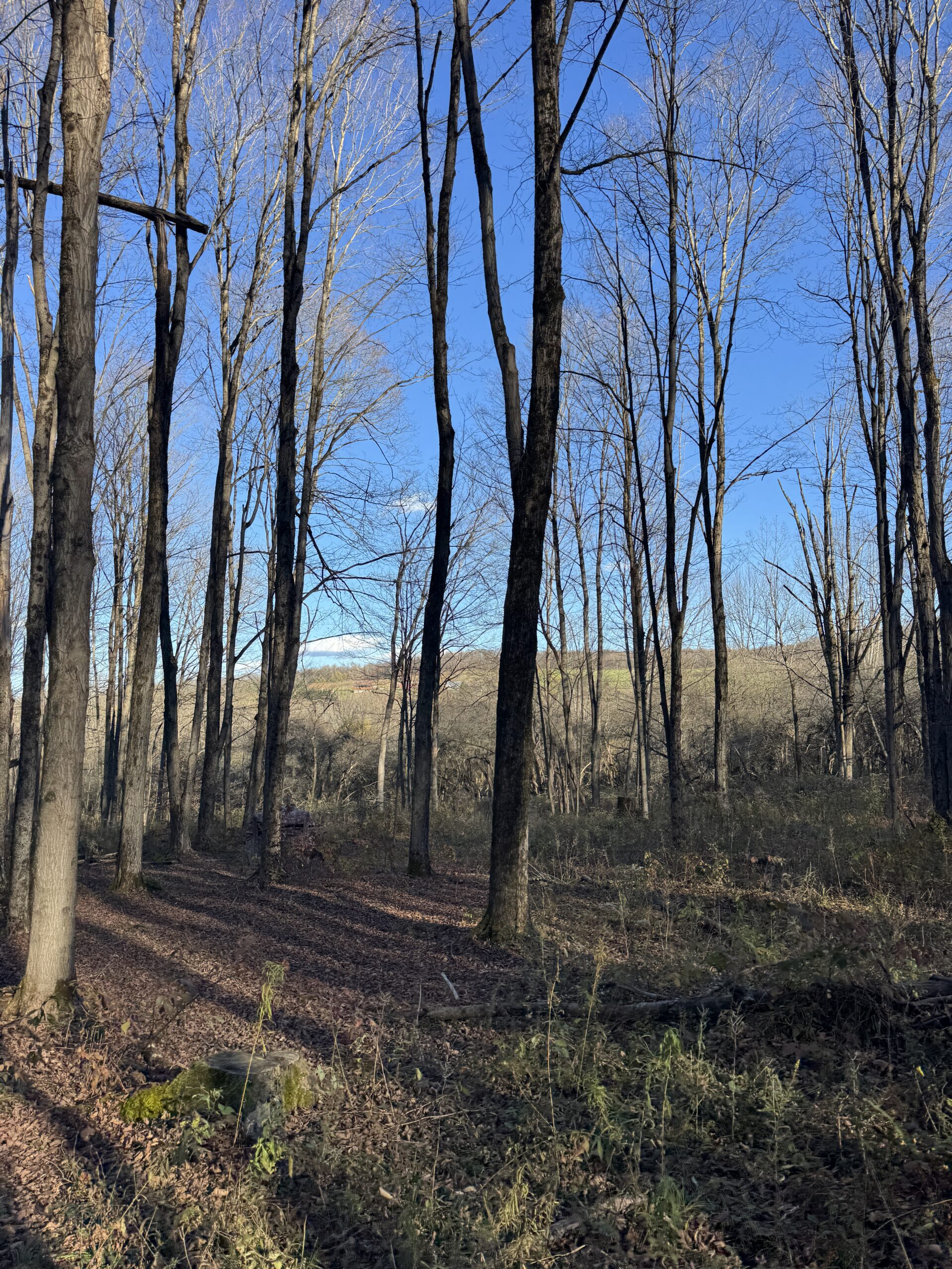 The property has been select-cut for sustainable forest management, leaving a healthy mix of maple and cherry, with most ash already removed. Existing logging roads provide easy access throughout the acreage.