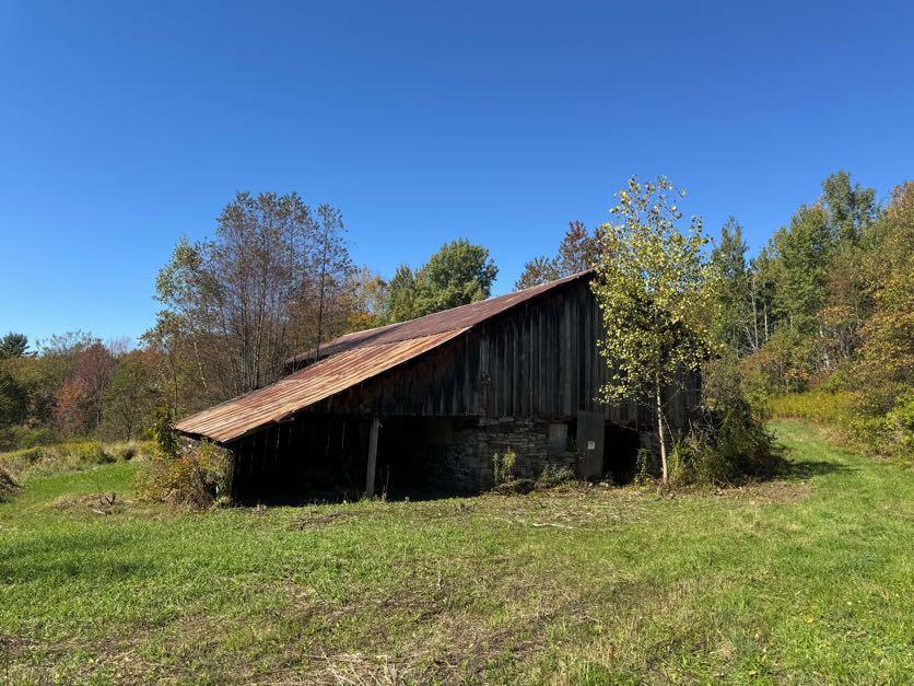 A solid 1929 barn with straight lines and character stands proudly on the land, having easily withstood the heavy snow loads of last winter, perfect for storage, workshop use, or possibly convert to a rustic camp.
