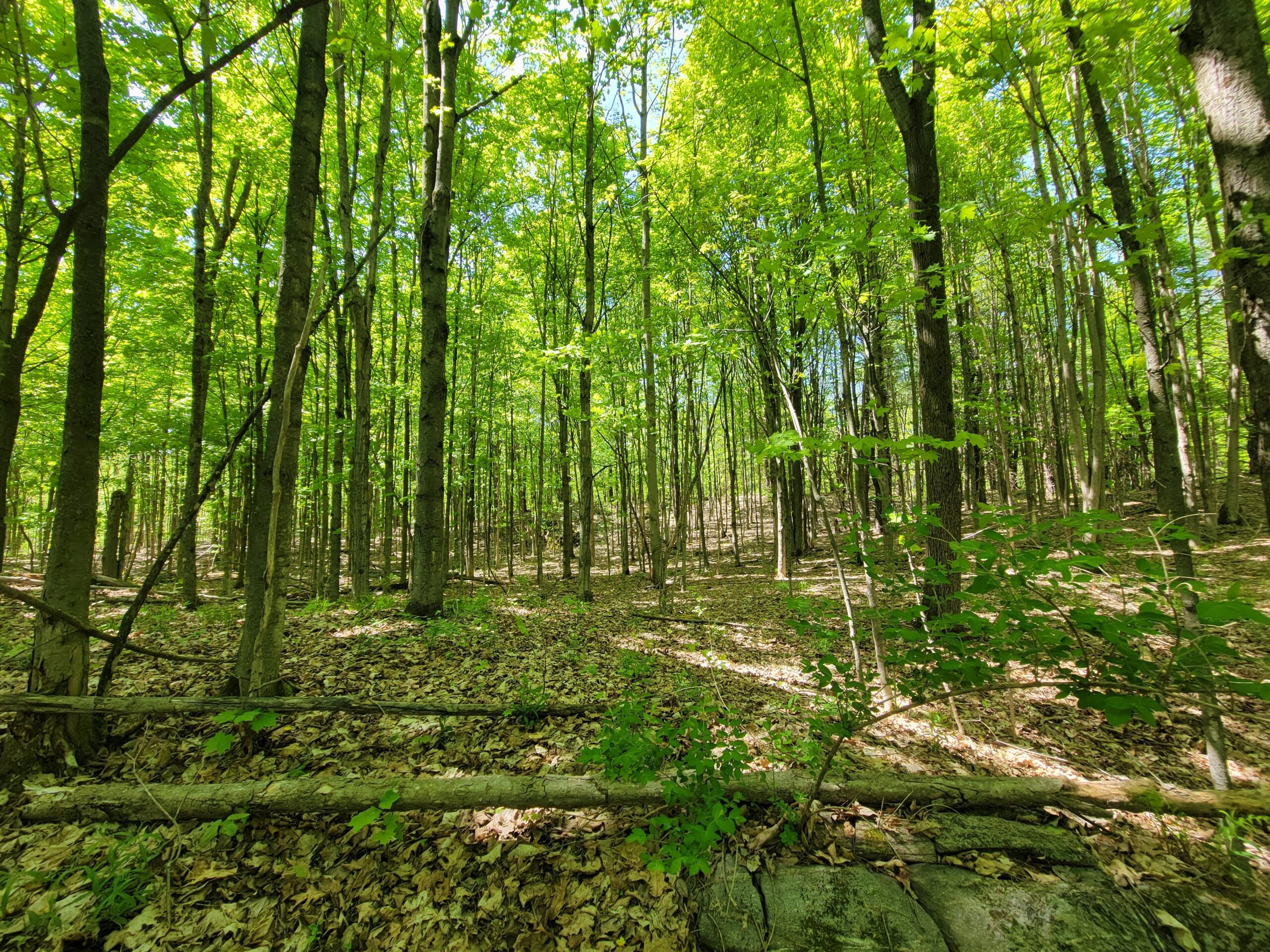 - Tremendous hardwood canopy and low undergrowth loaded with sugar Maple, all on the right slopes.
