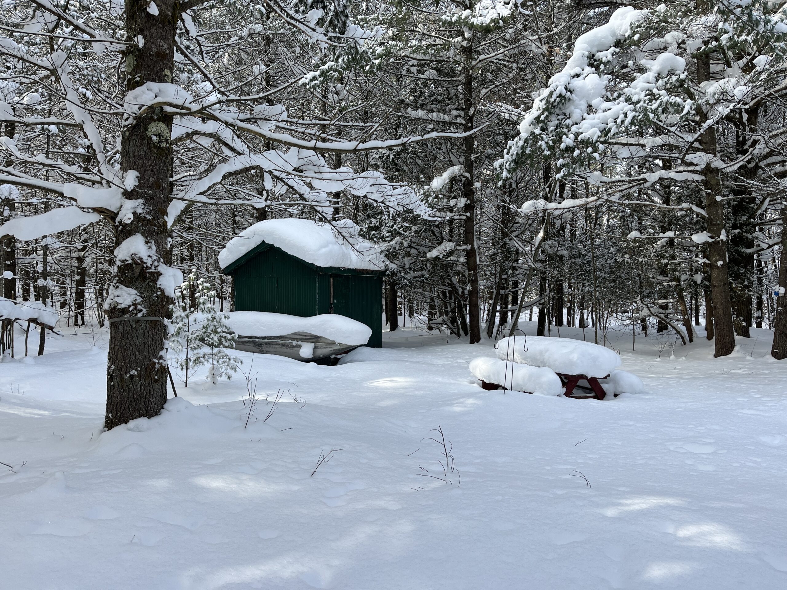 This property is a remote wilderness retreat with seasonal road access, perfect for those seeking privacy and seclusion. It features a storage shed and a pressure-treated tent platform, ideal for an outfitter tent. The land is accessible via several well-maintained trails that reach most areas of the property.