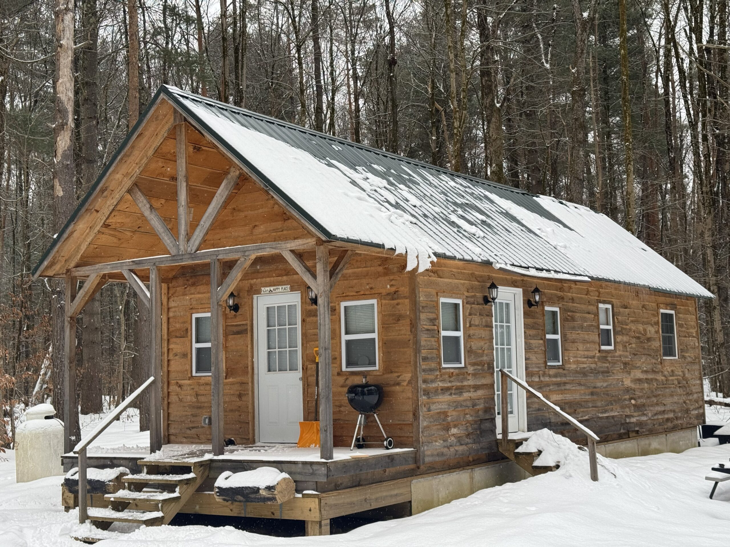 - 36′ x 14′ cabin with 6′ x 14′ covered front porch, the perfect place to relax and take in the peaceful surroundings.