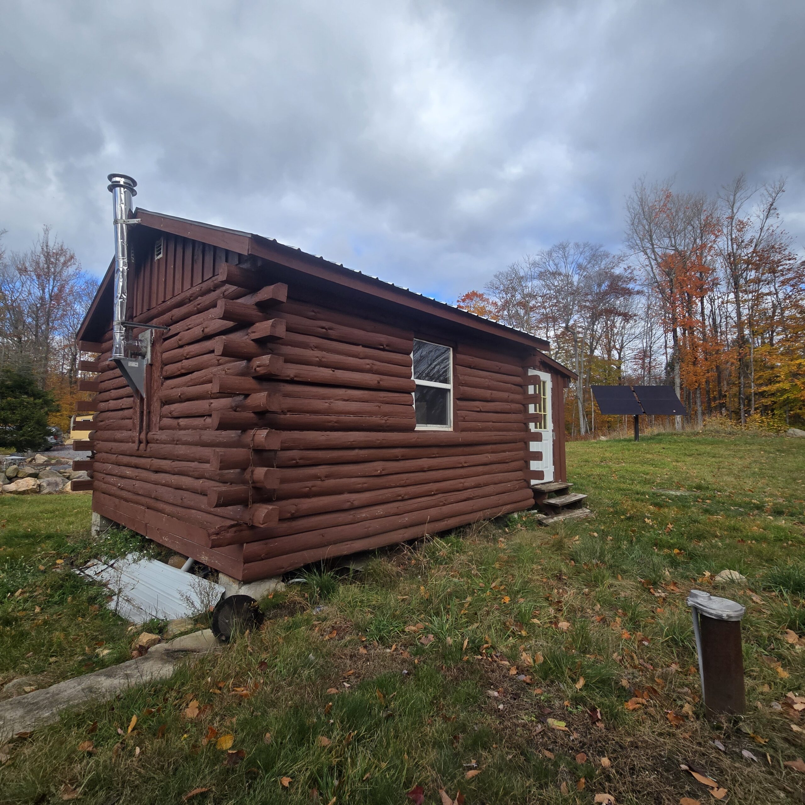 - 16’x16’ log camp with front enclosed porch.