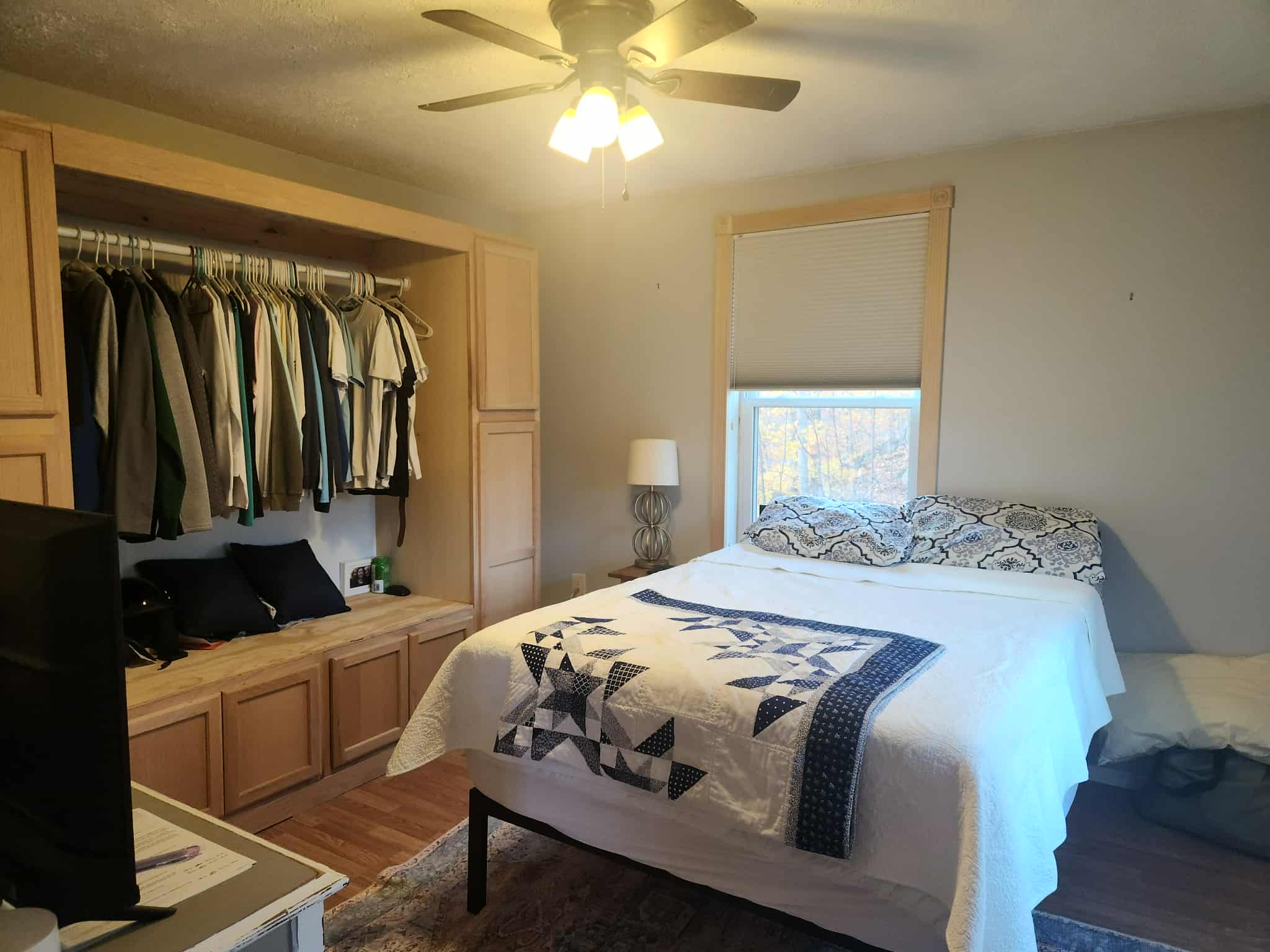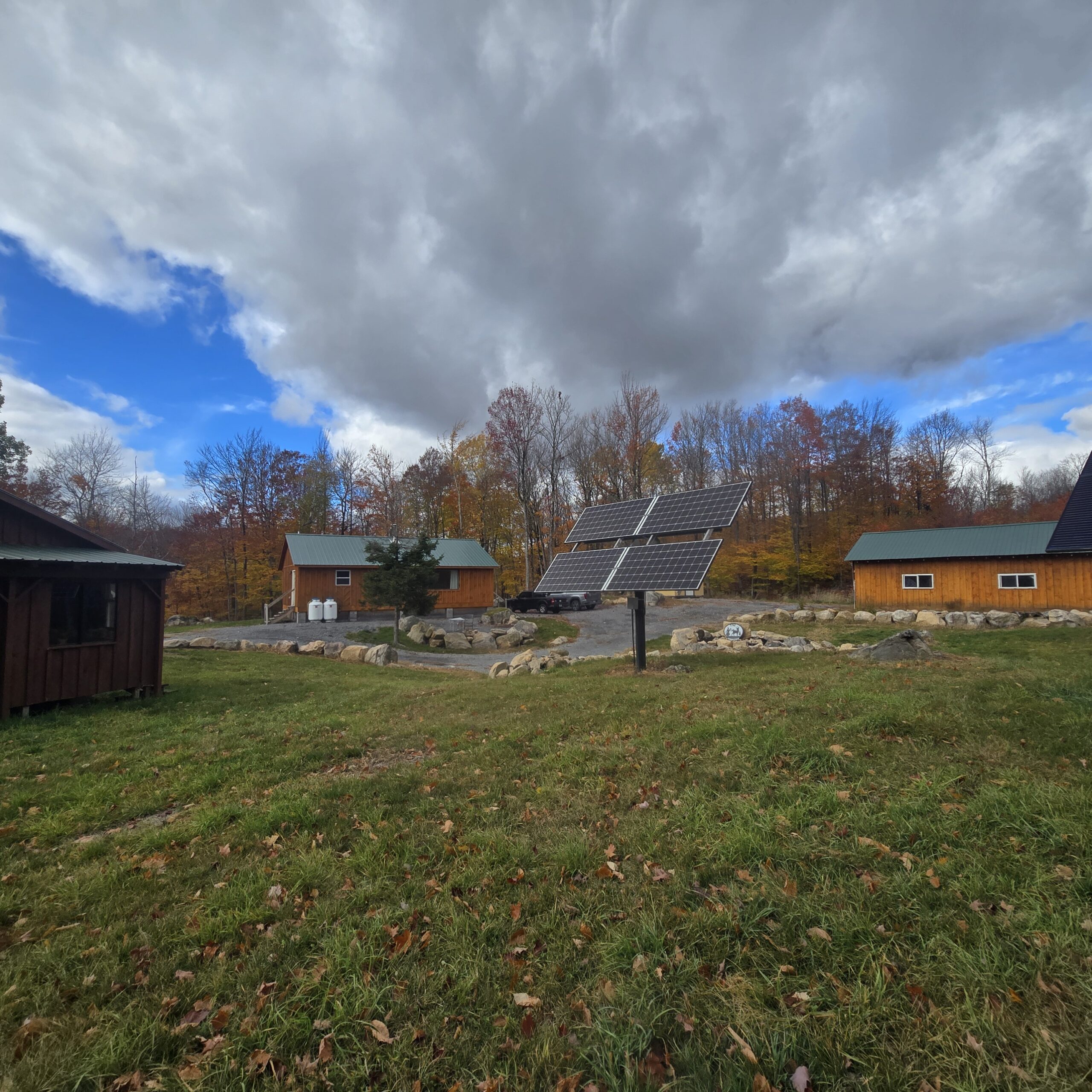 There’s a 960 sq.ft., 2 bedroom 1 bath, fully finished cabin with a wood stove and propane wall mount for heat. Also for power there is a fully functional Magna Sine solar power system and Generac propane standby generator. This system keeps you up and running year round while you are there or away.