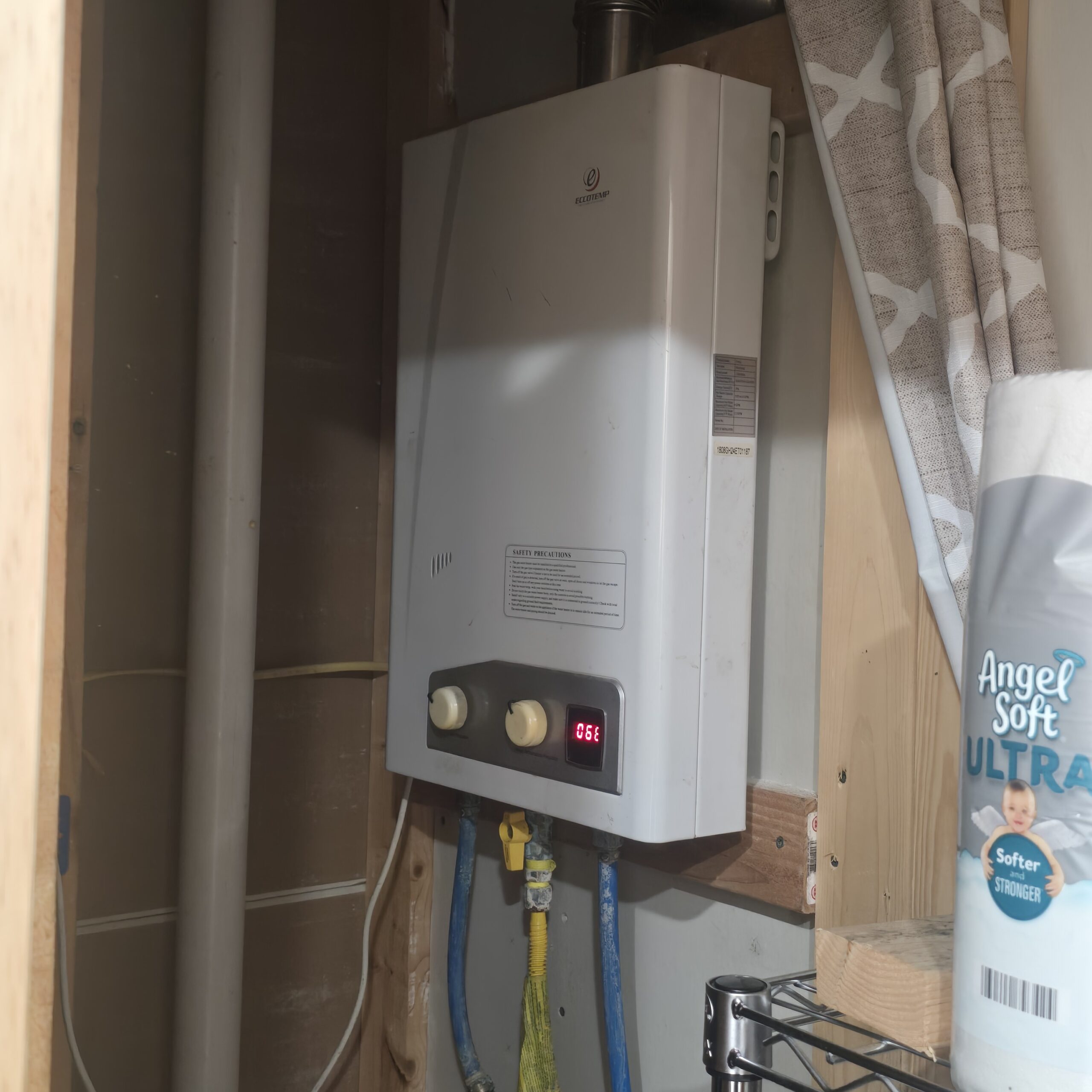 - Electric and a propane refrigerator, propane stove/oven, dishwasher, propane ON-Demand domestic hot water, bath tub/ shower.