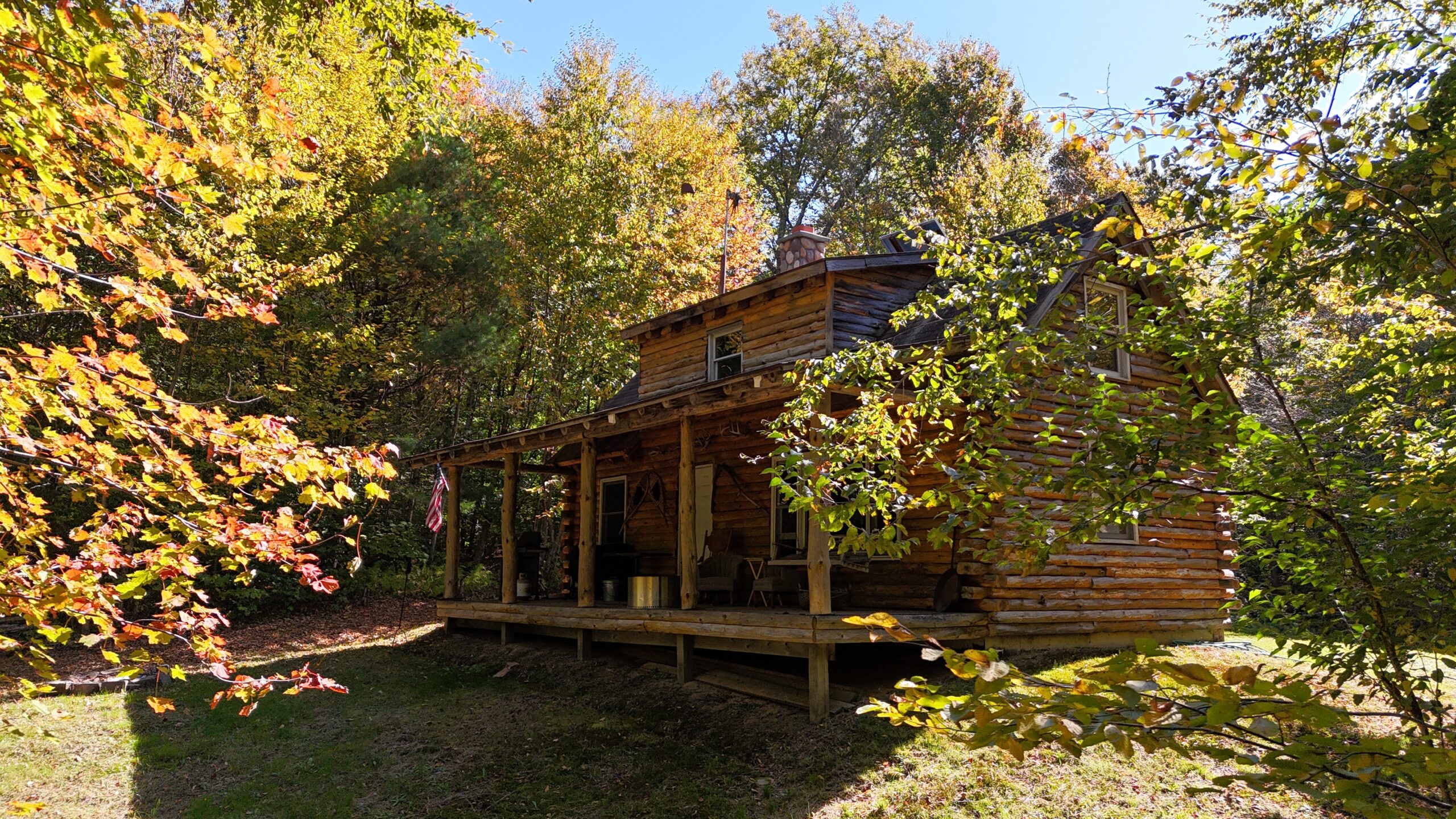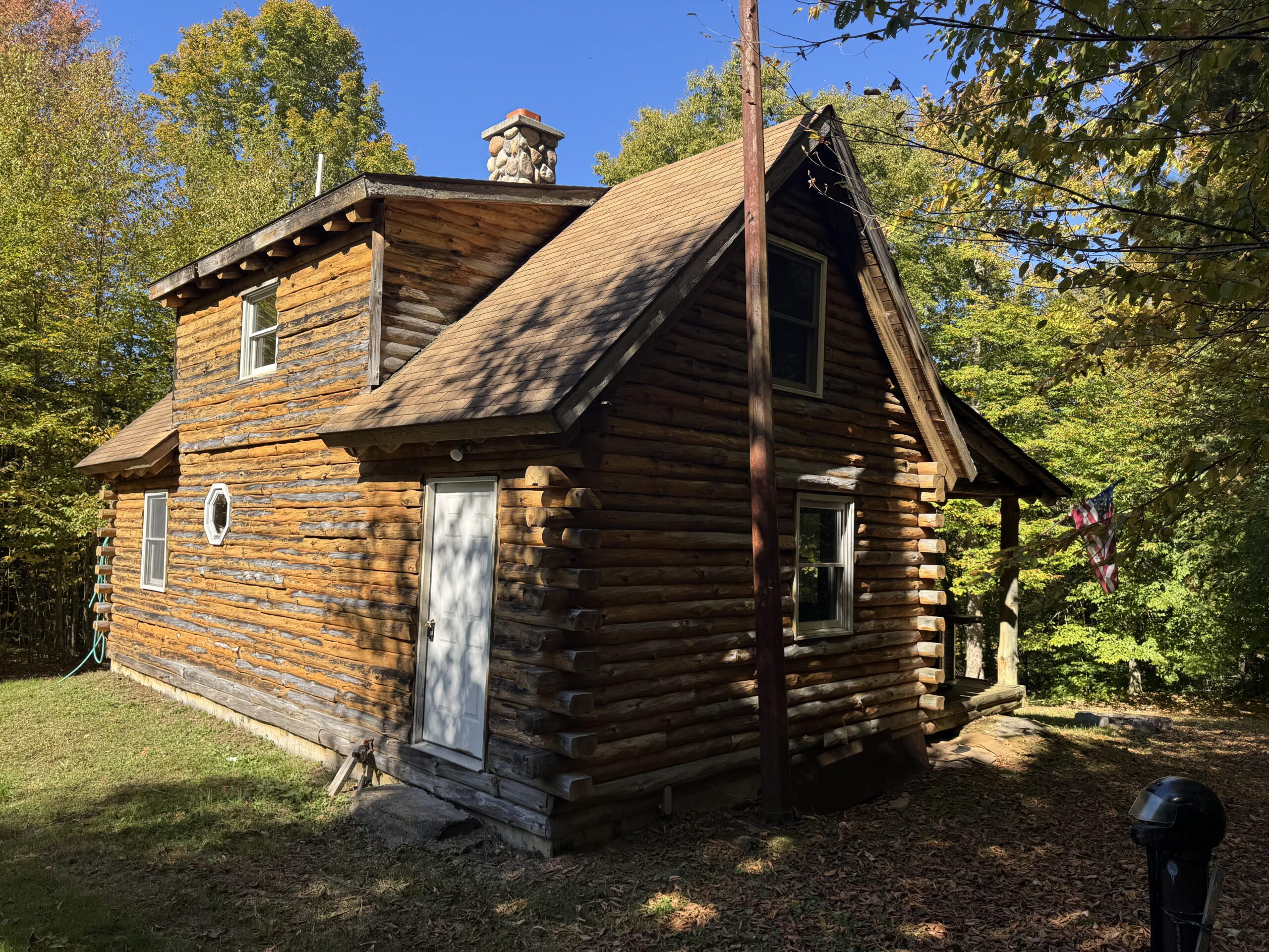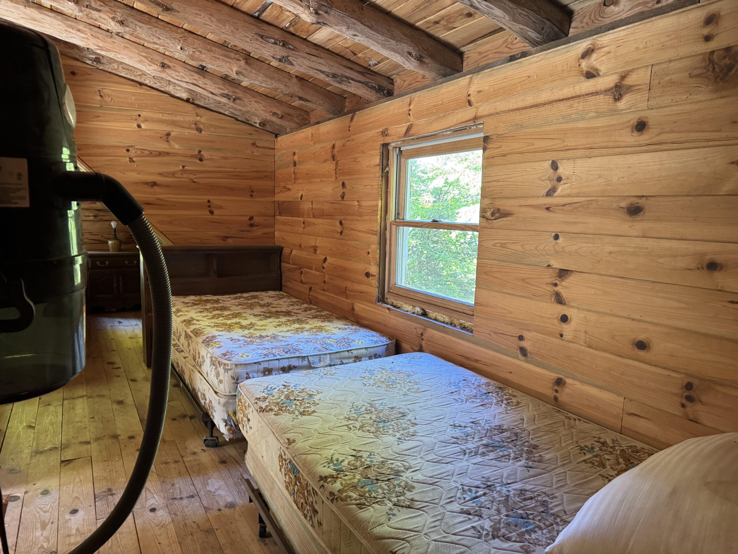 The cabin features a full basement with poured concrete walls, housing the utilities that power the home via generator and providing plenty of extra storage space. The first floor offers a cozy eat-in kitchen, living room, and full bathroom, while the second floor includes multiple sleeping areas and a central vacuum system for added convenience.