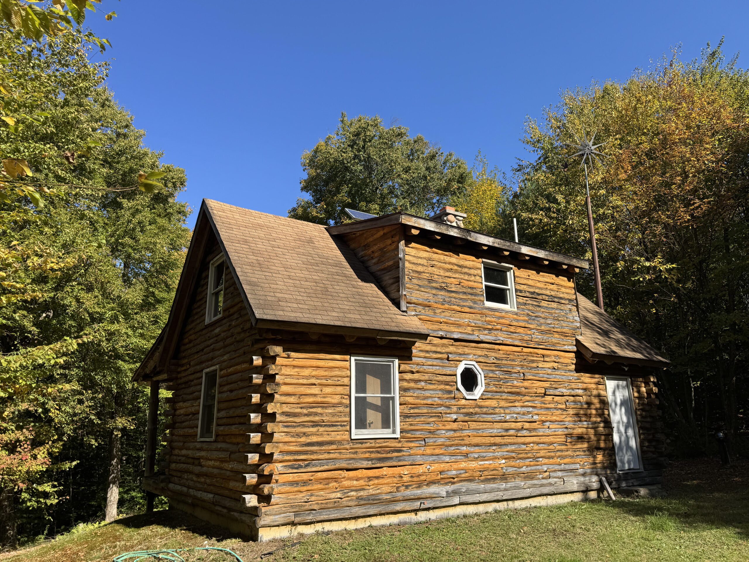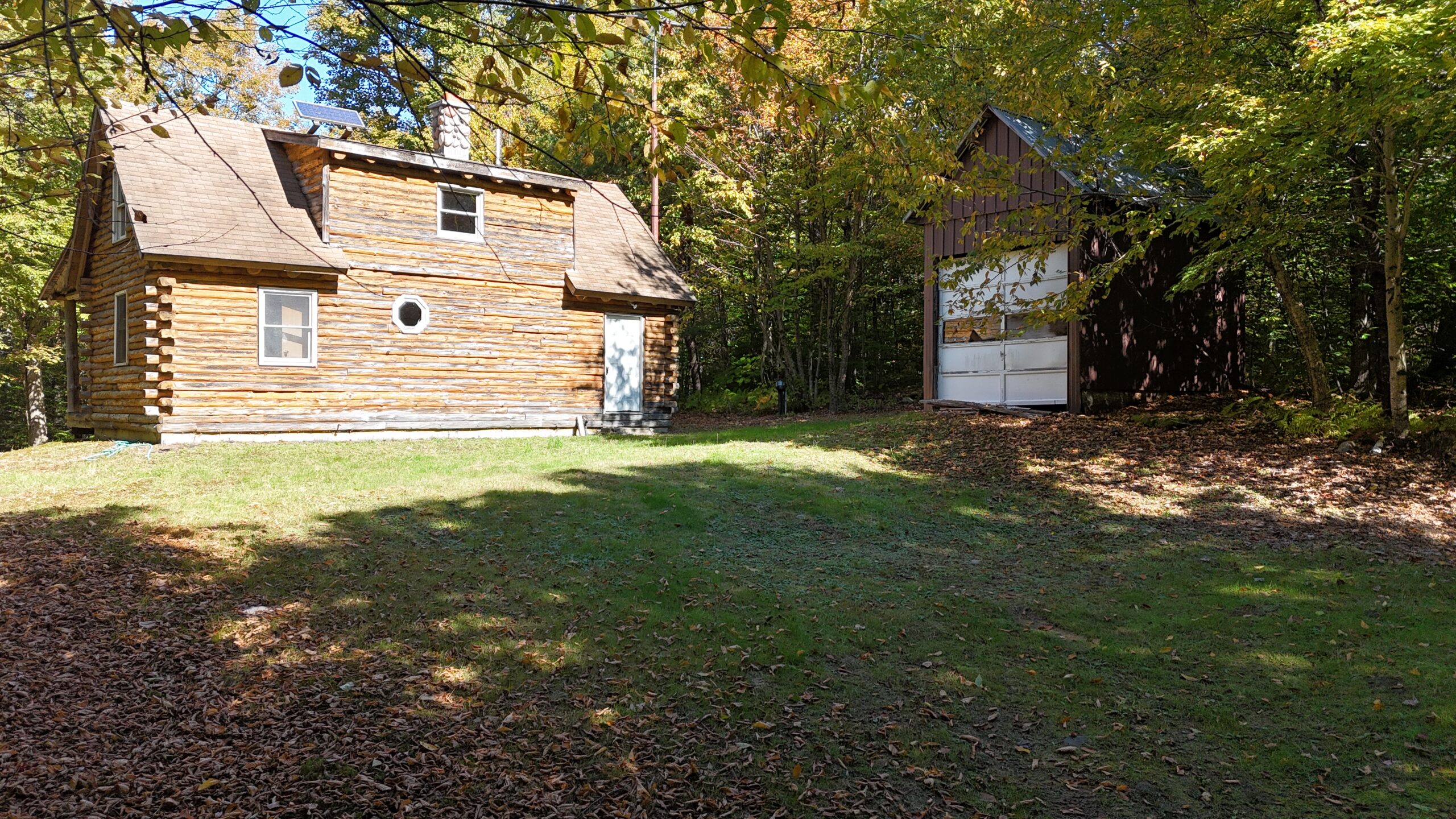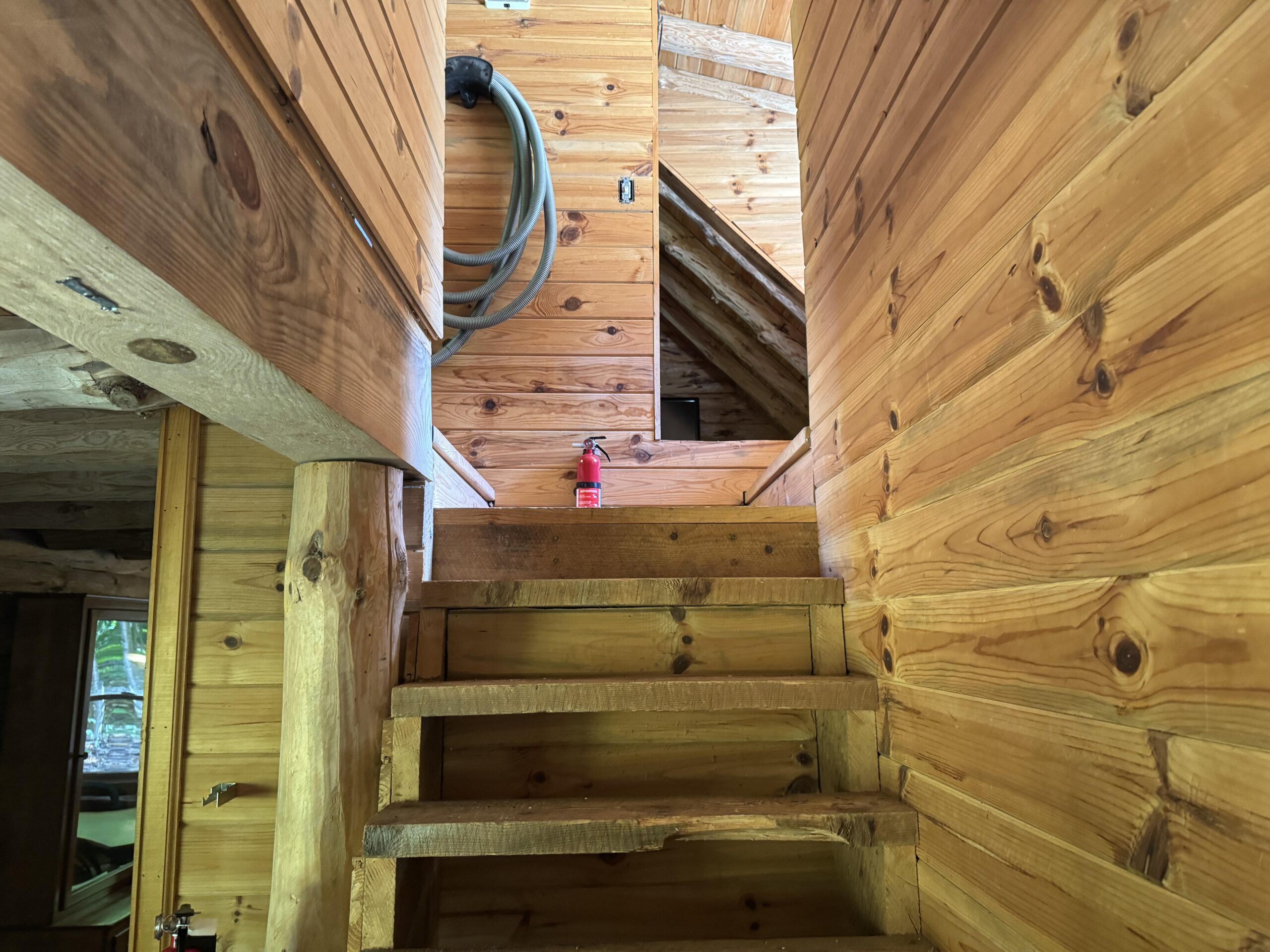 The cabin features a full basement with poured concrete walls, housing the utilities that power the home via generator and providing plenty of extra storage space. The first floor offers a cozy eat-in kitchen, living room, and full bathroom, while the second floor includes multiple sleeping areas and a central vacuum system for added convenience.