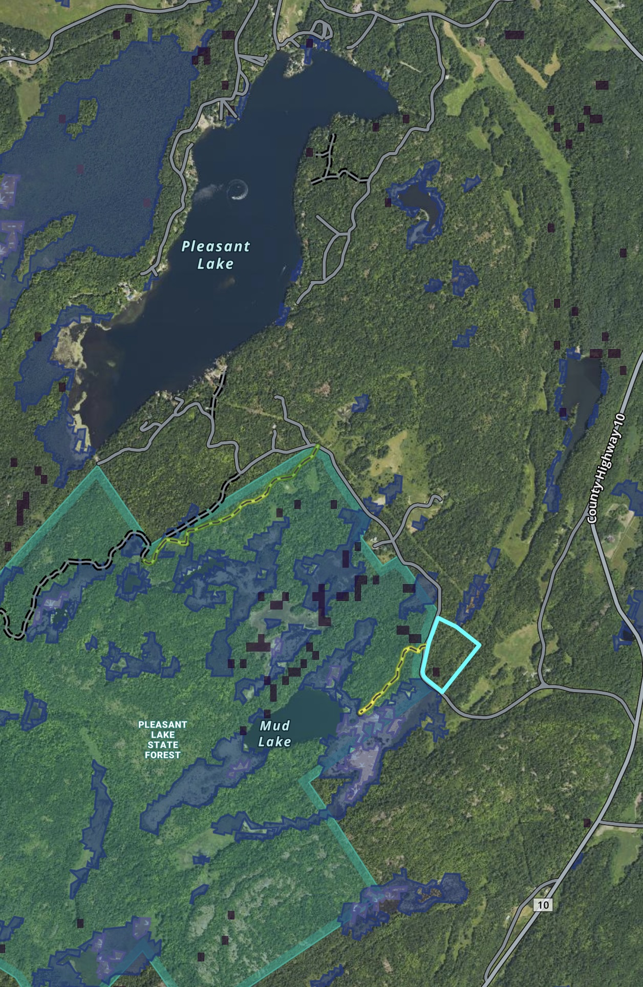 - Mud Lake and Pleasant Lake State Forest(959 acres), with trailheads, right across the road.