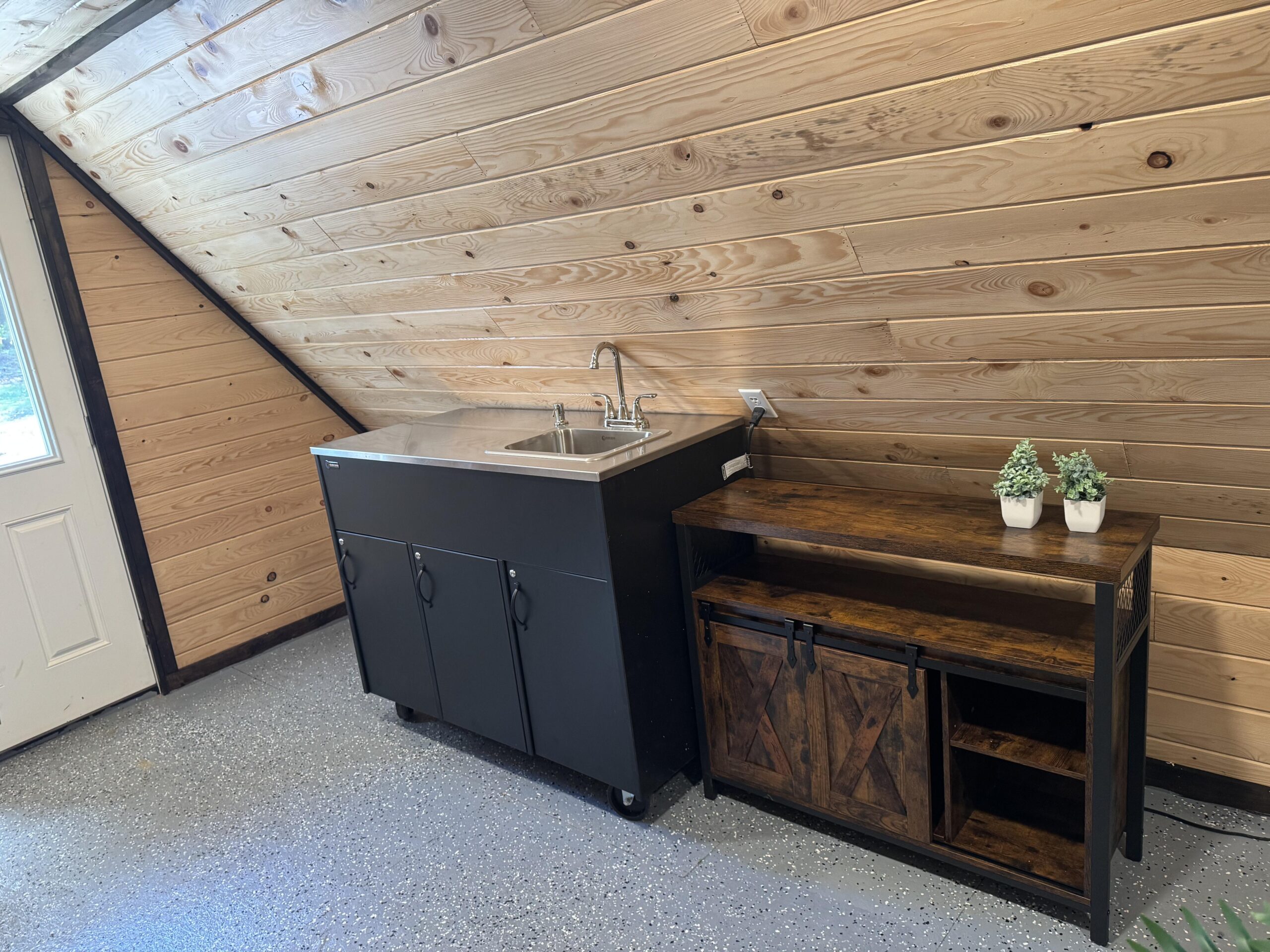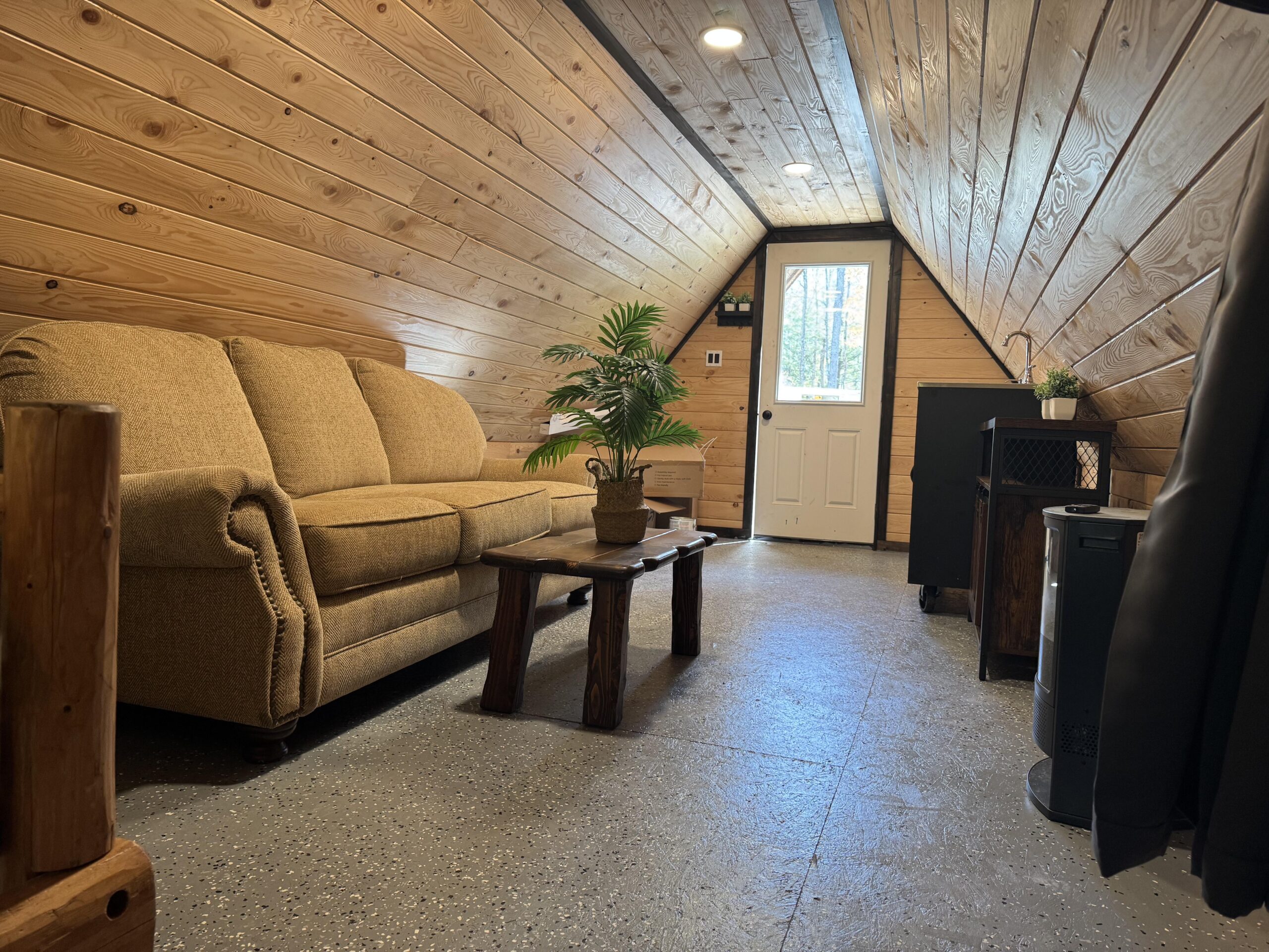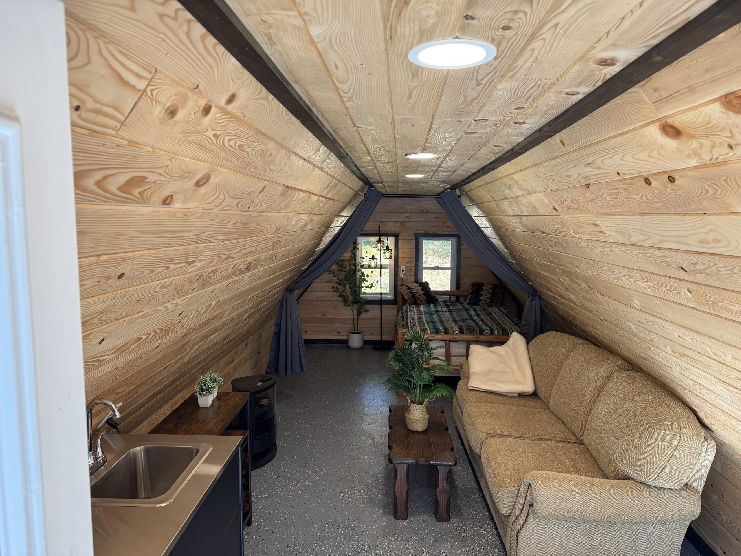 A 12’x30’ base camp structure sits tucked back from the road, ready for your next adventure. The cabin features spray-foamed floors, R-21 insulated walls and ceiling, tongue-and-groove interior, and a durable epoxy floor. It’s wired for a generator and comes furnished with an electric sink, fireplace, plus furniture, everything you need for a comfortable stay in the wilderness.