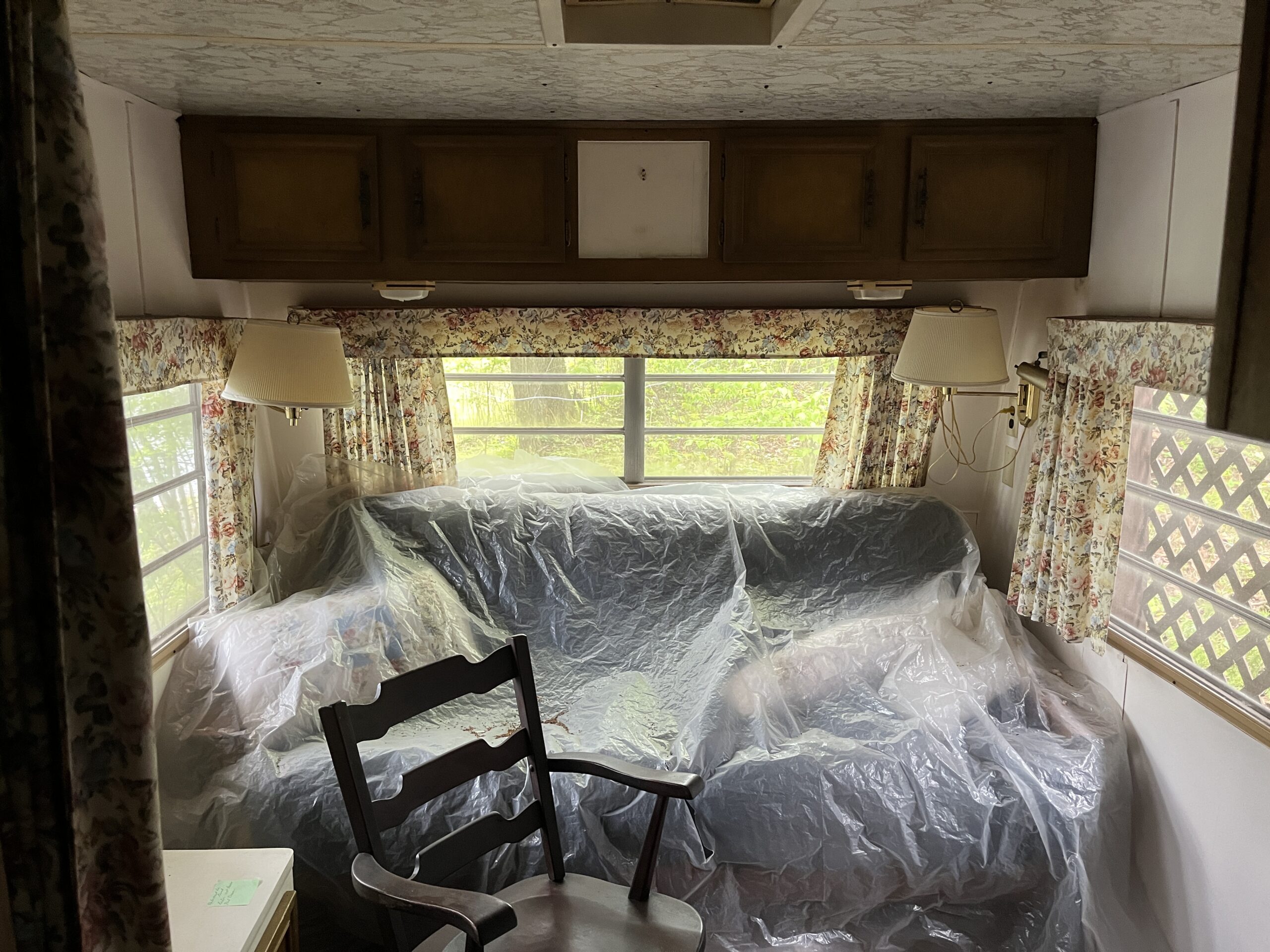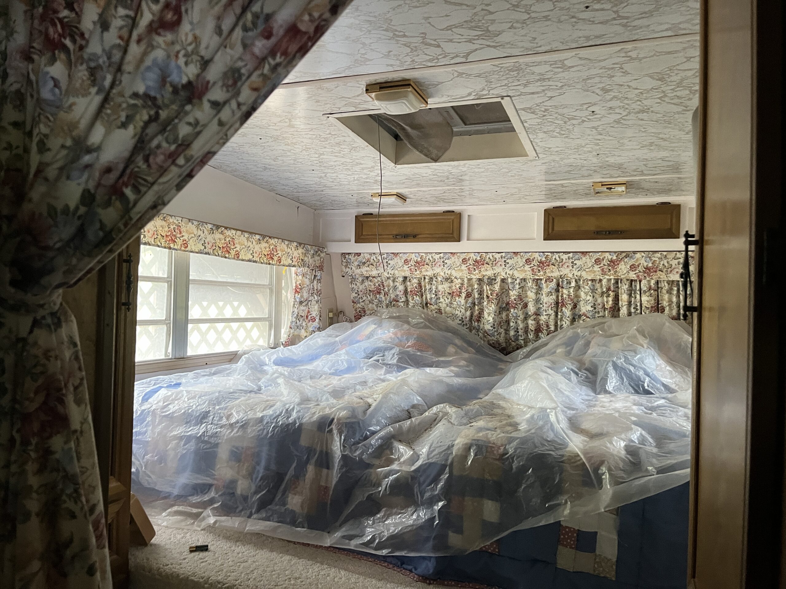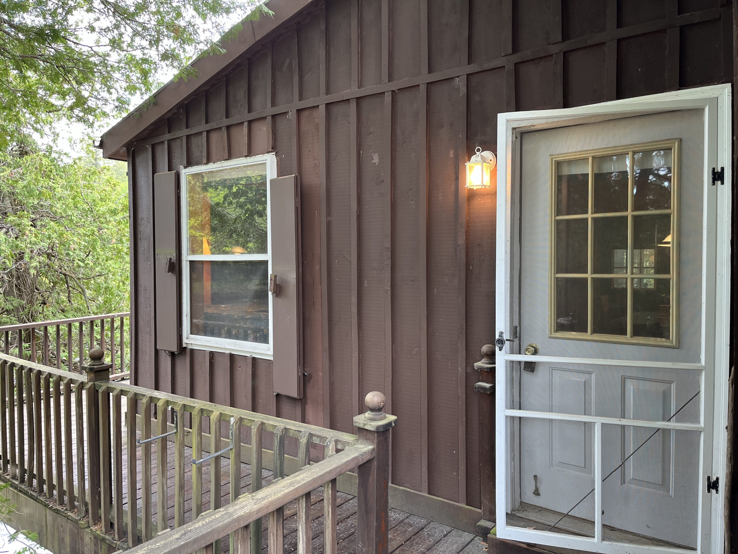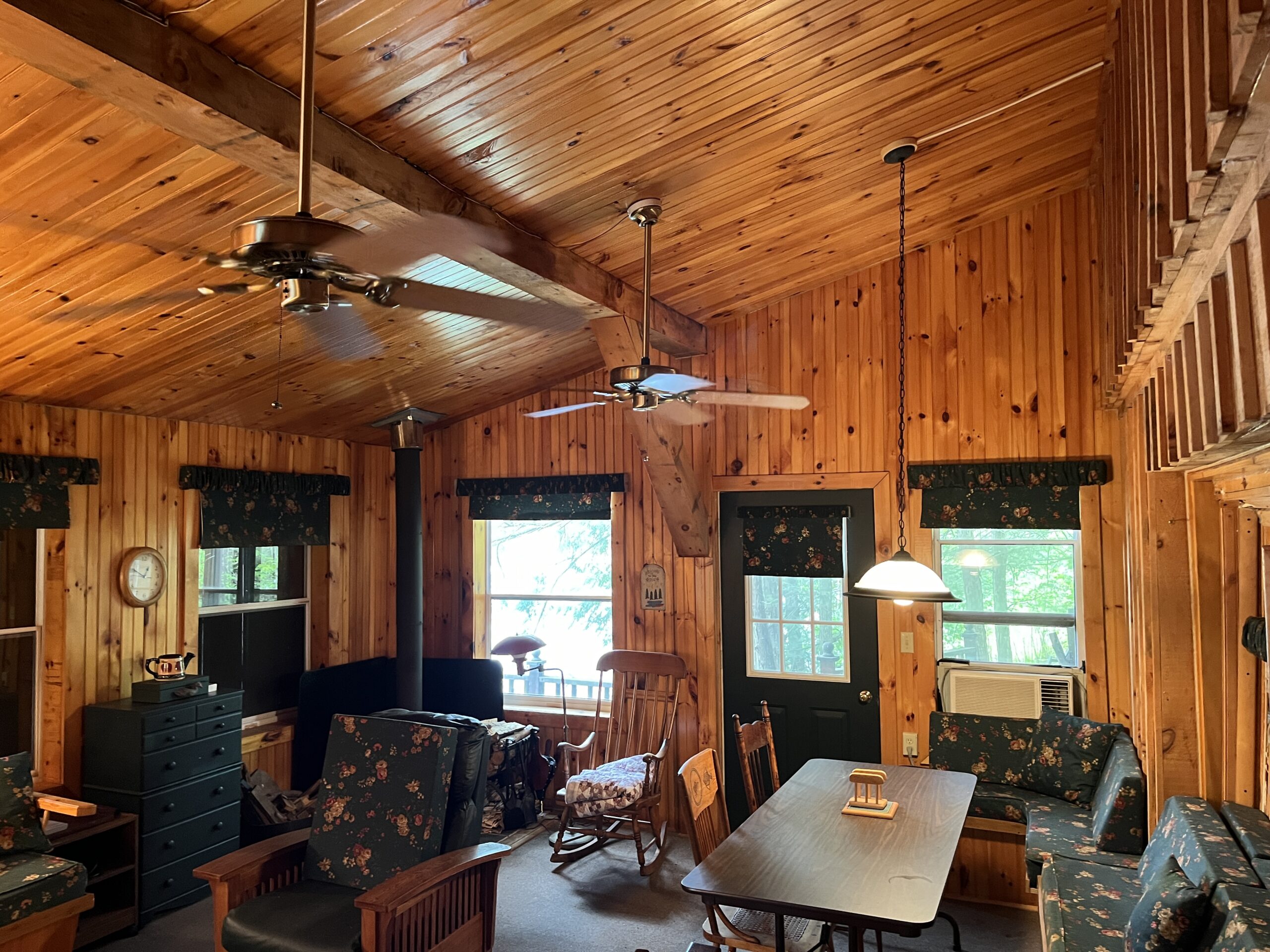 The property includes an older camper/trailer with a living room addition and a riverfront deck situated a few feet from the water’s edge. From the deck, you can enjoy views of Burch Falls and the soothing sounds of the river. The addition is fully finished with knotty pine and features a wood stove, perfect for chilly mornings. The camper, with its addition, is being sold as-is with all furnishings, and it has electricity. High-speed internet is available at the road. Please note that the property does not have a septic system or a well; there is a holding tank for waste that is periodically pumped, and water for washing is sourced from the river.