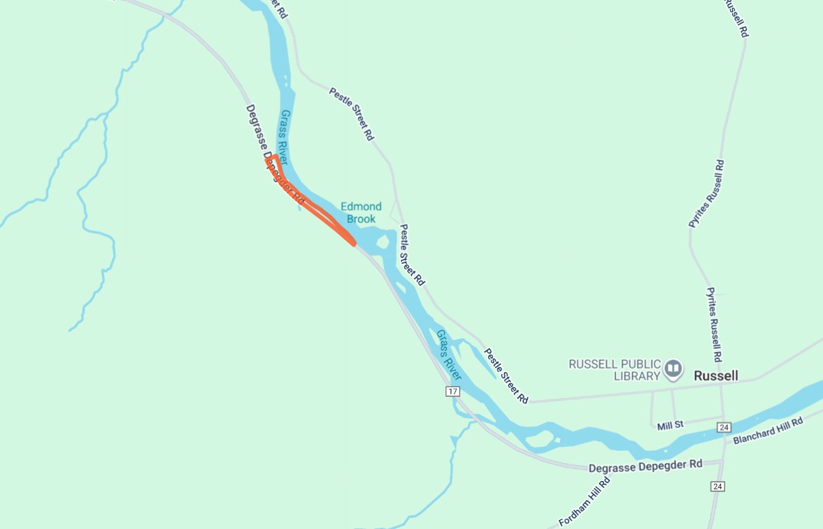 This 1.6-acre lot is a long, narrow strip of land following County Route 17 and the Grasse River for just over 1,500 feet. It offers a great mix of riverfront, from sandy shores to rock outcroppings, and boasts year-round access just outside town on a paved county road.