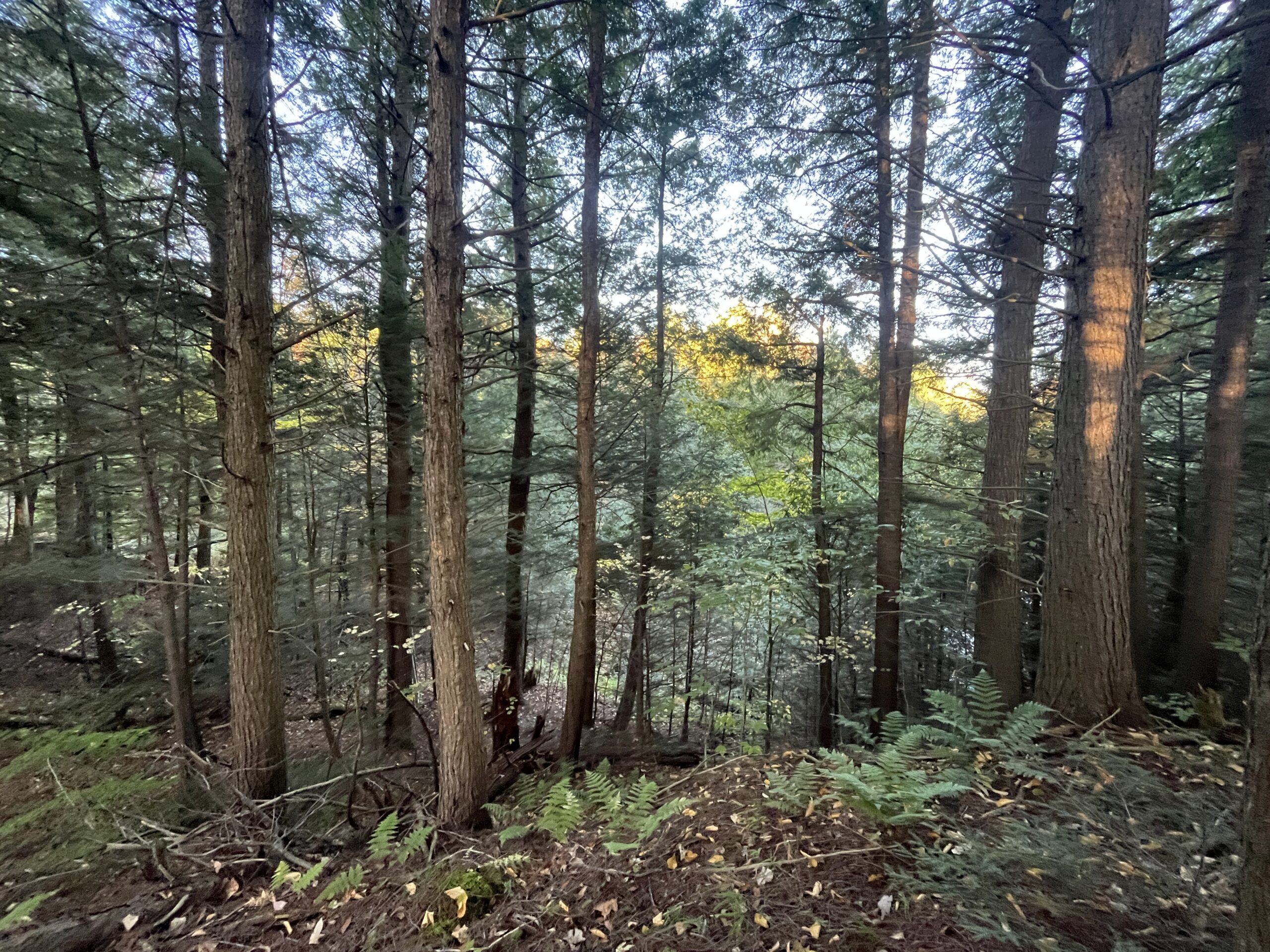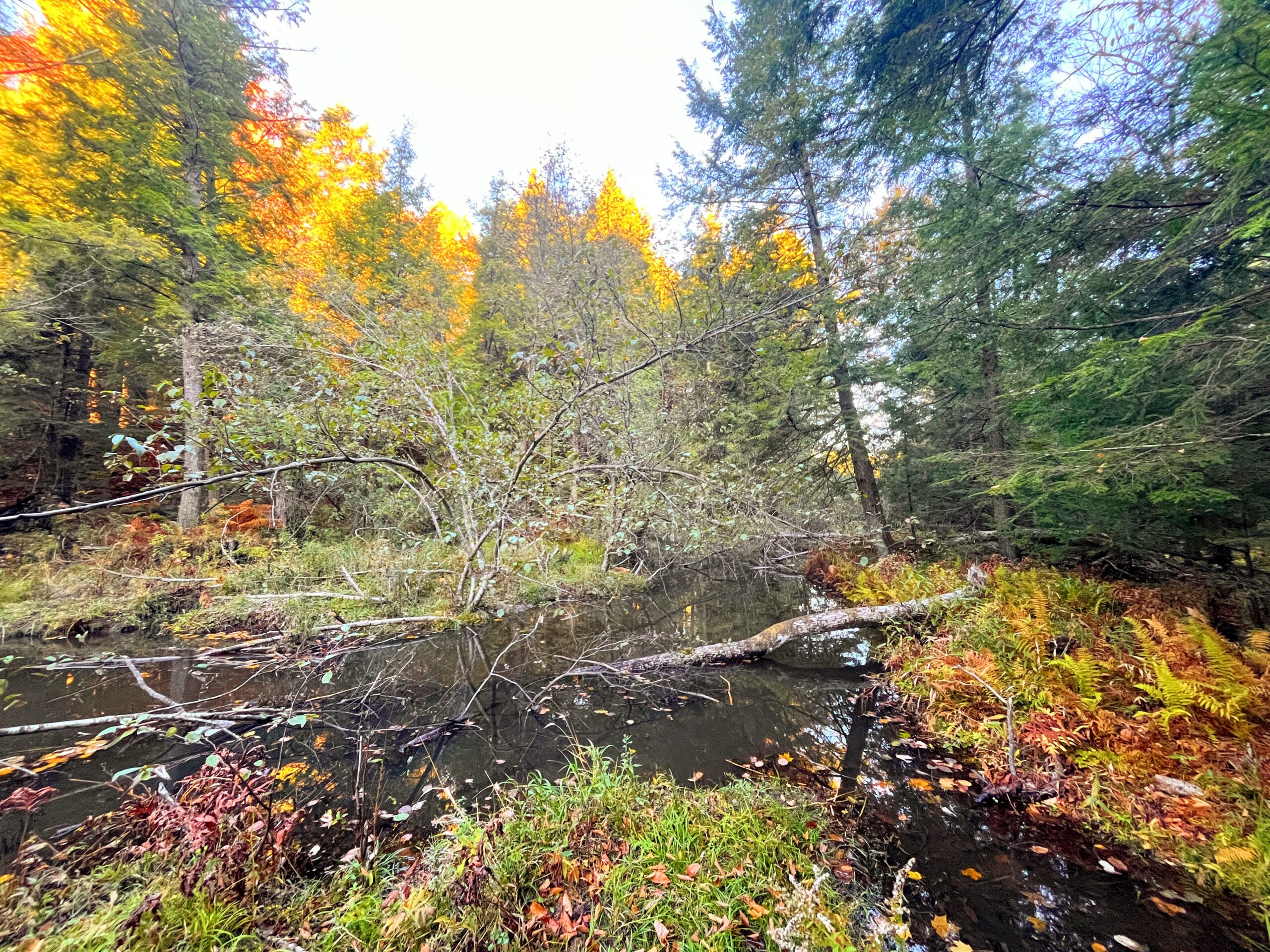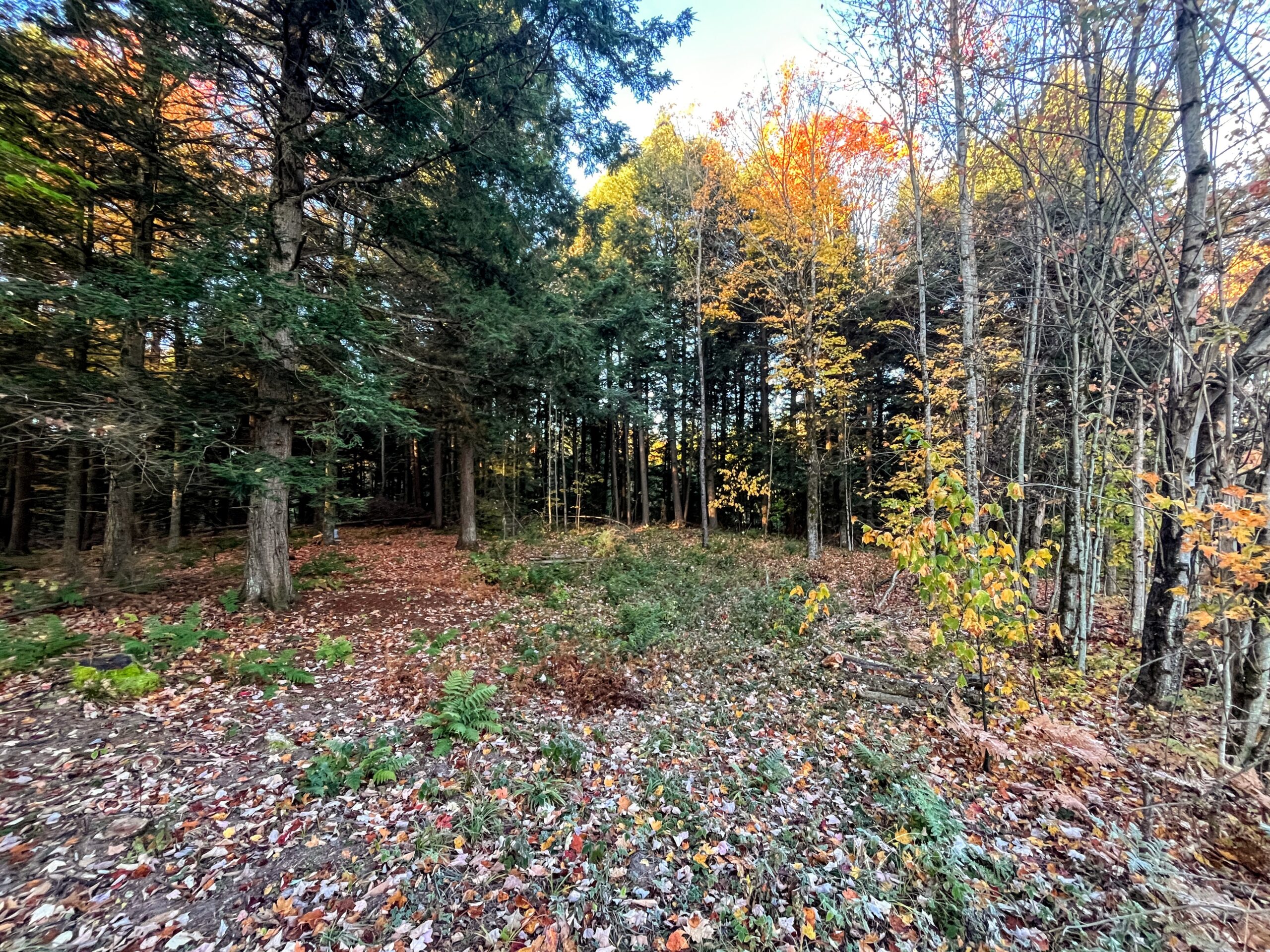 The lot features a prime location with a cleared building site and an approved building permit for an 18 x 26 cabin. Mature hemlock and hardwood trees are abundant, giving the property a park-like feel. Additionally, the western edge of the property boasts over 500 feet of frontage on Sawyer Creek, a woodland trout brook known for its native brook trout and serene atmosphere perfect for relaxation.