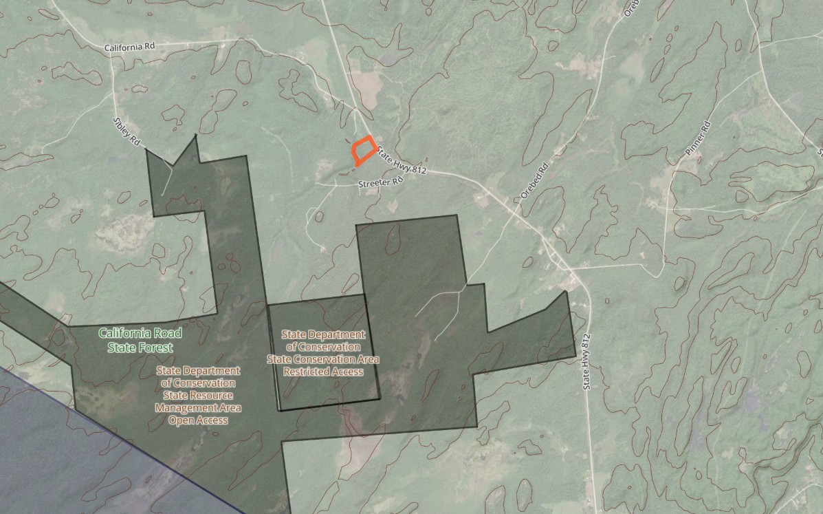 From this location, you can easily access surrounding State Game Lands, rivers, and nearby Adirondack Lakes, including the Oswegatchie River and Lake Bonaparte. It’s also just a short walk to the California Road State Forest, which offers over 1,400 acres of public recreational land. The area is known for its populations of whitetail deer, bear, turkey, and other small game.